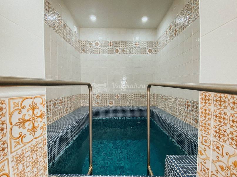 Номер для компании из 6 человек. Что входит? -сауна; -комната отдыха с диваном и мягким светом; -комната с двумя большими диванами и с столом; -тв-зона; -прохладный бассейн; -душевые; -санузел. Вместимость до 6 человек.